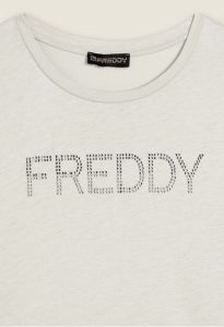 November 16, 2025 キラキラすぎるぅ フロントには2色のラインストーンで描かれたFREDDYロゴがキラキラ✨✨すぎるほど輝いてます! 生地も柔らかく とても気持ちいい着心地です。 カラーも豊富で嬉しい☺️ B128=ブルーグレー M104=モカ N=ブラック Z102=オフホワイト Z59=ブラウン こちらは BB36ソックスをセットでご注文されますと、20%OFFになります😊 ご注文の際 紹介者欄に私の名前を記載くださいませ☺️ 半袖Tシャツ