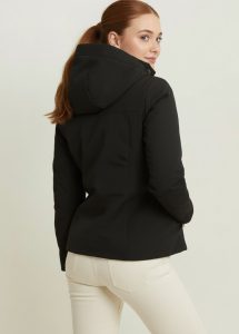 ハイネックとドローストリング付きのフードが冷たい風から首まわりを守り、袖口のインナーカフスが内部の暖かさを逃しません。
