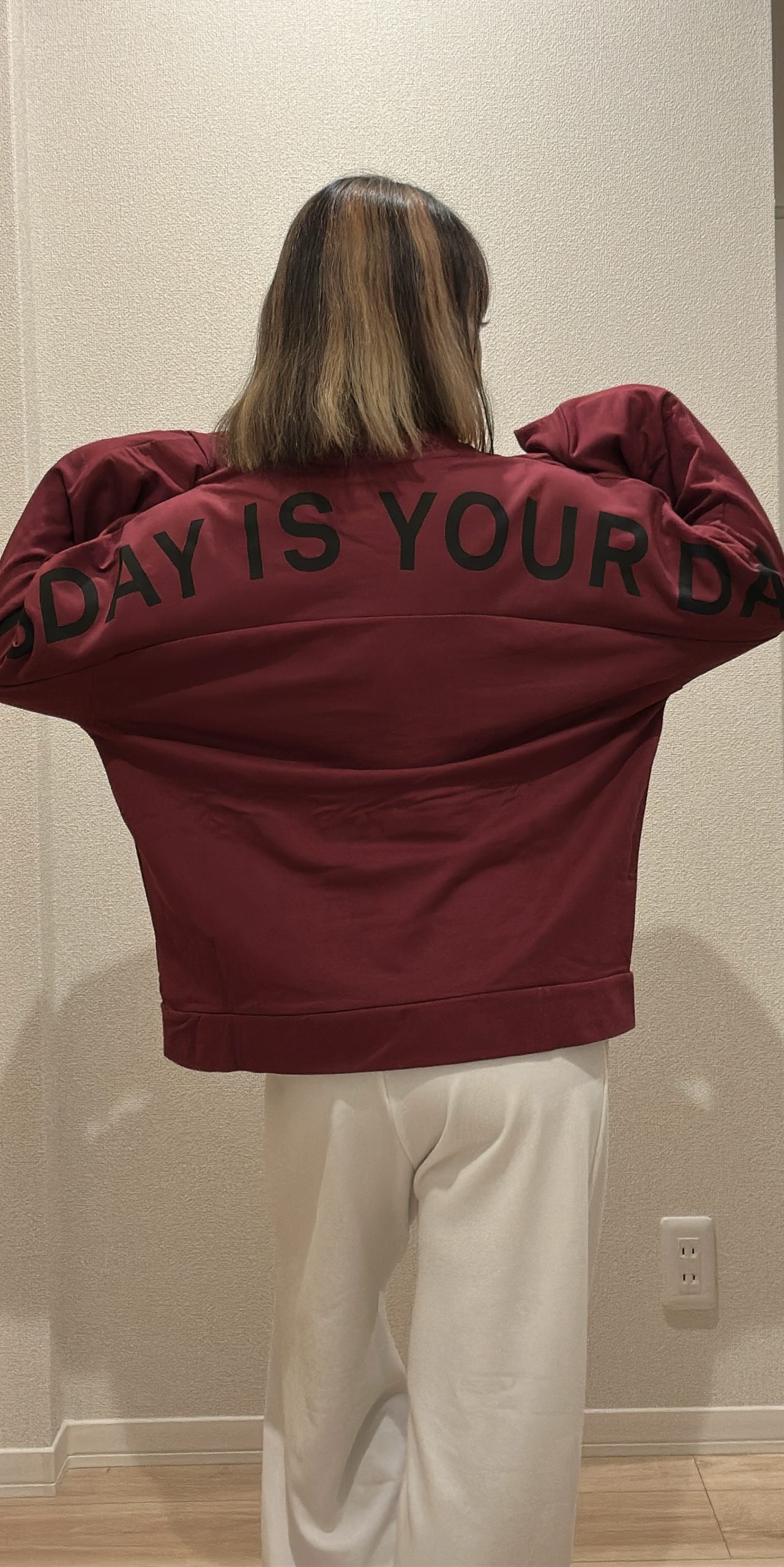 フロントには 胸の中央あたりに 小さくFREDDYのロゴを刺繍。背中の上部に「TODAY IS YOUR DAY」 のメッセージ✨✨✨